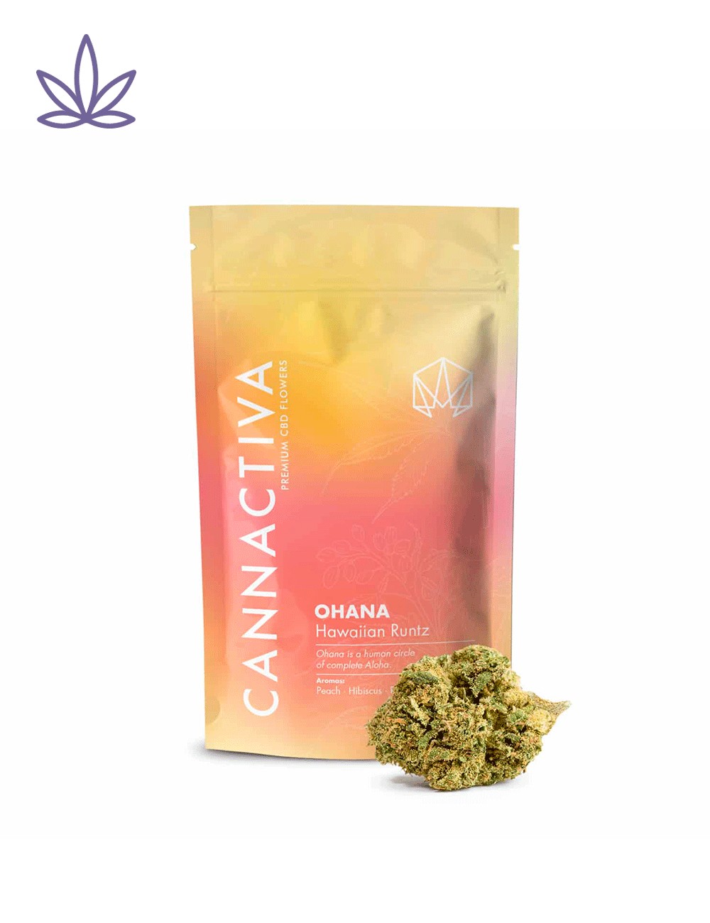 Ohana Hawaiian Runtz es una variedad de Cannabis CBD que destaca por su gran cantidad de resina. El claro de sus flores se intensifica con la gran cantidad de cristales que recubren su superficie. Sus cogollos poseen un colorido aspecto, con una mezcla de verdes brillantes, morados oscuros y naranjas vibrantes. A menudo, los cogollos de Hawaiian Runtz también tienen una capa de tricomas gruesos y brillantes, lo que les da un aspecto nevado y brillante que los hace muy atractivos.